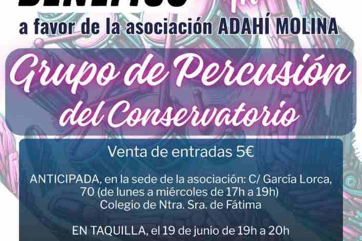 El evento comenzará a las 20:00 horas y contará con la participación del Grupo de Percusión del Conservatorio de Molina de Segura, que interpretará una selección de piezas del repertorio mundial, bajo el lema: “Cada nota resuena por ADAHI Molina”. Las entradas tienen un coste simbólico de 5 euros y se pueden adquirir de forma anticipada en la sede de la asociación (Calle García Lorca, 70), de lunes a miércoles de 17:00 a 19:00 horas, o directamente en la taquilla del teatro una hora antes del evento.