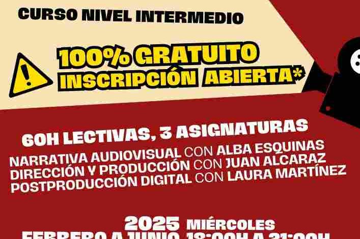 La Concejalía de Cultura del Ayuntamiento de Molina de Segura ha ampliado el plazo de inscripción para el Curso de Creatividad y Realización Cinematográfica hasta el próximo lunes 20 de enero de 2025. Este curso, organizado por la asociación Última Toma y coordinado por el cineasta Noé Galera, se desarrollará de manera gratuita entre febrero y junio de 2025.