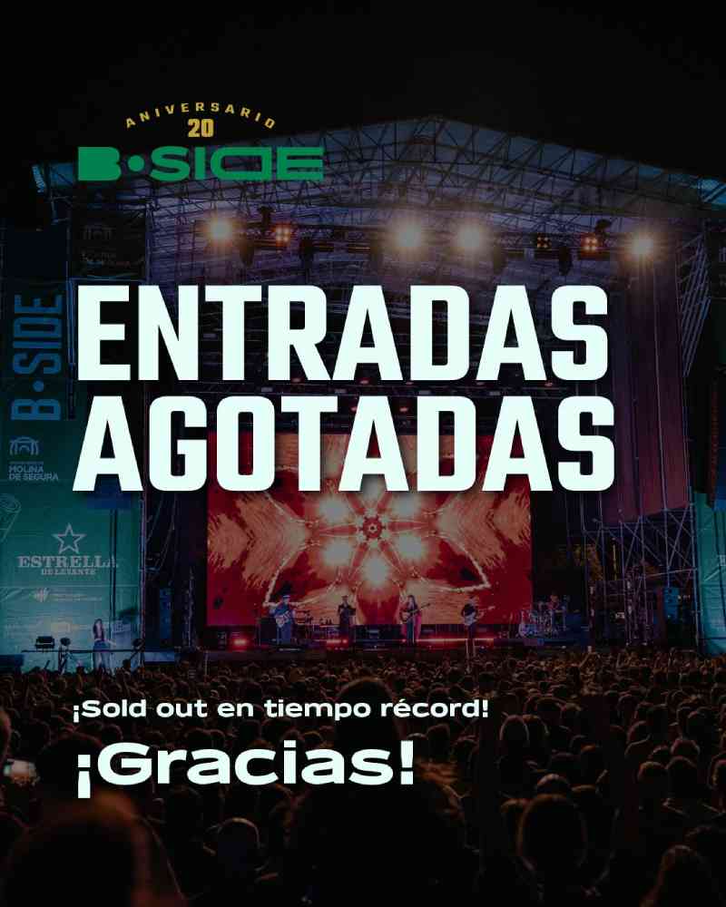 El B-Side Festival 2025, que celebrará su 20 aniversario en Molina de Segura los días 5 y 6 de septiembre, ha logrado un hito histórico al agotar sus 8.000 entradas en menos de tres horas desde su puesta a la venta el pasado fin de semana. El rápido «sold out» confirma el creciente interés por este evento, que se ha consolidado como una de las citas musicales más destacadas del panorama nacional.