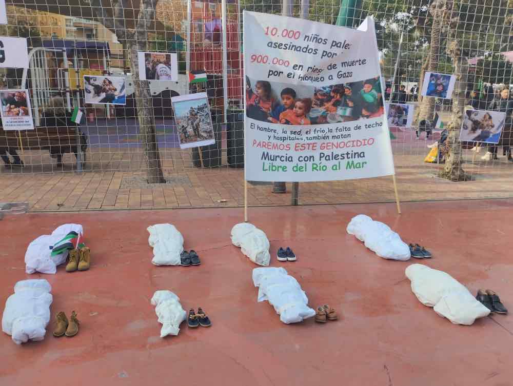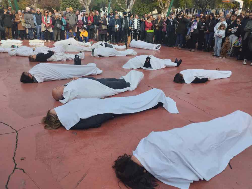 Uno de los momentos más impactantes fue una performance realizada por varios organizadores. Envueltos en sábanas blancas en el suelo, representaron el horror y las muertes causadas por este prolongado conflicto. Posteriormente, se leyó un Manifiesto en español y árabe, destacando la gravedad de la situación en Gaza y Cisjordania, con cifras alarmantes de muertes, heridos, y daños infraestructurales.