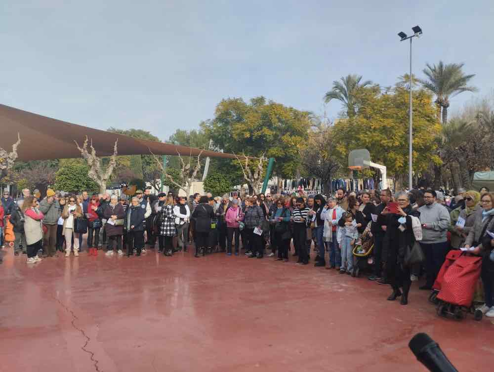 En la pista de baloncesto del Parque de la Compañía en Molina de Segura, esta mañana se ha desarrollado un acto significativo convocado por diversas asociaciones en respuesta al conflicto palestino-israelí. Con  gran participación de la comunidad, el evento resuena con un unísono grito de «No a la guerra» y un llamado por la paz.