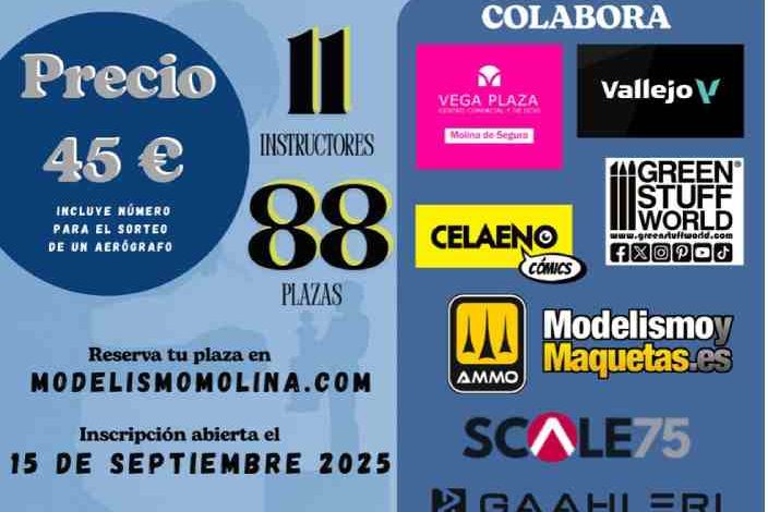 Del 14 al 16 de noviembre, el Centro Comercial Vega Plaza de Molina de Segura será el escenario del II CLINIC 2025, un evento especializado que reunirá a 11 instructores de primer nivel procedentes de diferentes puntos del país, en una cita que se consolida como una de las más destacadas del año para los aficionados al modelismo estático.