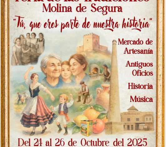 La Feria de las Tradiciones de Molina de Segura 2025 se celebrará los días 24, 25 y 26 de octubre en el Barrio del Castillo, y en esta octava edición presentará importantes novedades centradas en la recreación de oficios tradicionales, según ha informado el Ayuntamiento.