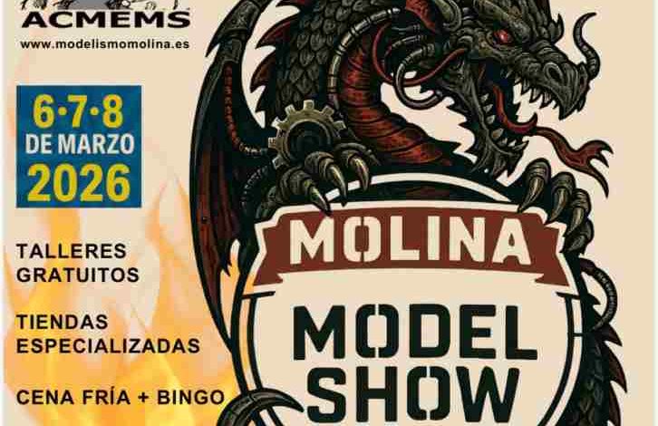 El Molina Model Show 2026 vuelve a Molina de Segura los días 6, 7 y 8 de marzo con un cambio importante: se traslada al pabellón deportivo del IES Francisco de Goya. El evento incluye concurso y exposición de modelismo, zona comercial, talleres, torneos y una cena abierta al público con bingo.