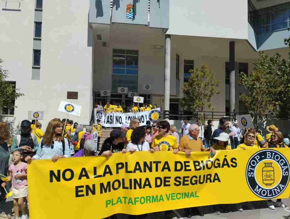 Esta mañana, las calles de Molina de Segura fueron escenario de una multitudinaria movilización convocada por la Plataforma Vecinal Stop Biogás. La protesta partió desde el Barrio de la Ermita y concluyó en la Plaza del Ayuntamiento, congregando a numerosos vecinos que expresaron su rechazo a la construcción de la planta de biogás en el Polígono Industrial La Polvorista. Durante el recorrido, los manifestantes hicieron sonar cacerolas y corearon consignas como: «Alcalde, levanta y para esta planta»,»Planta de biogás lejos de mi hogar» y «Nuestra salud no es un negocio»
