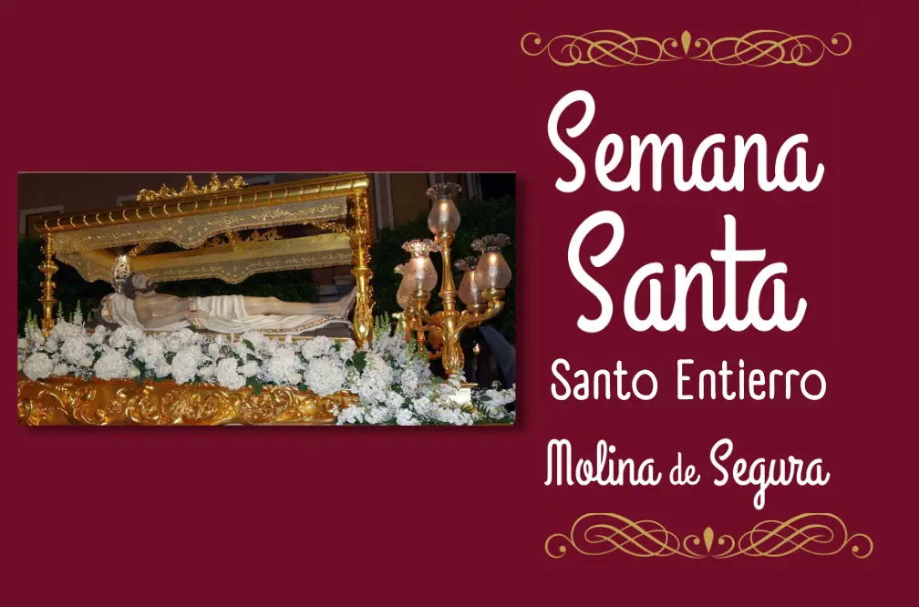 Viernes 29 de marzo a las 20:00 horas. La Procesión del Santo Entierro, tiñe de negro y blanco las calles de Molina de Segura en las noches del Viernes Santo. Esta procesión está organizada por la Venerable Cofradía del Santo Entierro. Unos 400 nazarenos, ataviados con túnicas negras y blancas en señal de luto, participan en el desfile junto con la Banda de Tambores de la Cofradía, bandas de música y un cuarteto de violines. El desfile comienza a las 20.00 horas con la intención de que las imágenes puedan ser vistas en la calle con luz natural.