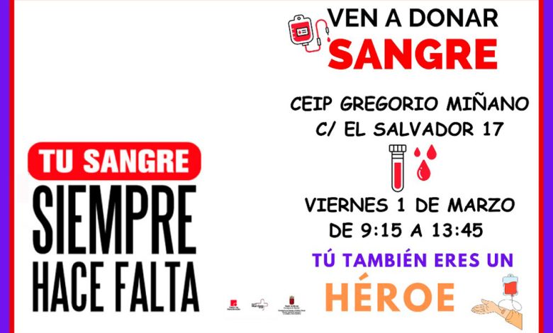 En el Colegio Público de Educación Infantil y Primaria Gregorio Miñano de Molina de Segura, el próximo 1 de marzo, de 09:15 a 13:45 horas, se llevará a cabo una significativa iniciativa en colaboración con el Centro Regional de Hemodonación. La unidad móvil de este centro se trasladará a dicha institución educativa con el propósito de recibir a todas aquellas personas que deseen realizar una donación de sangre.